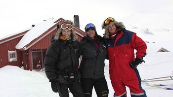 FJELLFOLK: Her er fotograf Torje Bjellaas (t.v.) og Arve Uglum (t.h.) saman med Solbjørg Kvålshaugen, som er med vidare frå første sesong av Fjellfolk.